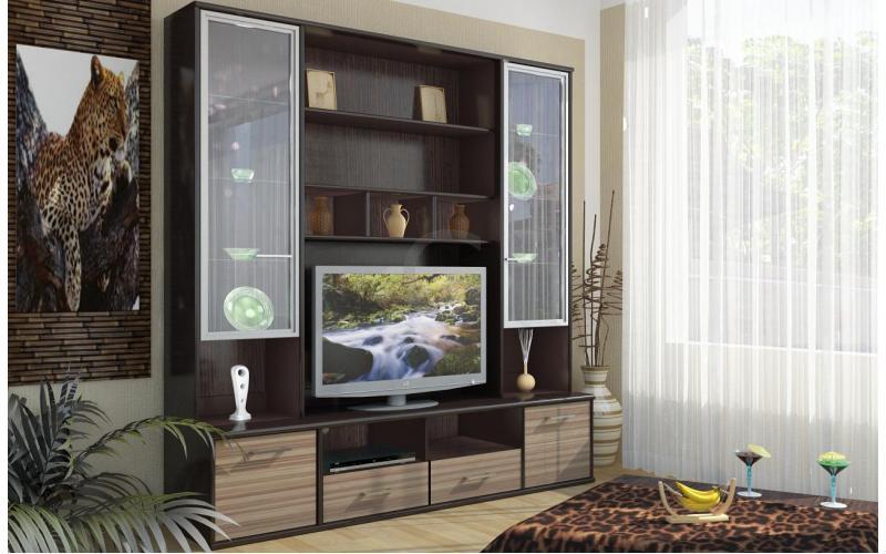 Мебельный комплект Амадеус Gerbor состоит из пеналов , секцией для телевизора, и шкафа.